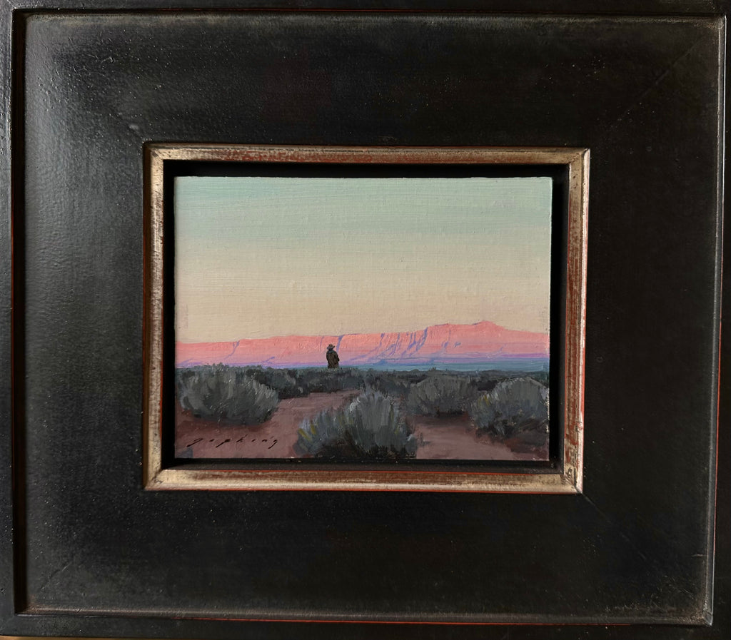 Painted on location, this piece conveys both the stillness of the high desert and the timeless presence of its landscape. Lipking’s mastery of light and atmosphere transforms the small 6”x8” canvas into a window onto the vast Southwest.